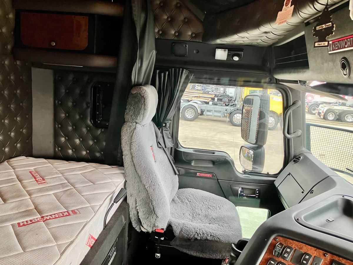 2023 Kenworth K200 Sleeper Cab P/Mover, Cummins X15 with Eaton Ultrashift automated transmission, ESP (Prime Mover) Electronic Stability Program, ABS, AIRGLIDE 460 Suspension, alloy rims, Battery disconnect switch, Battery Isolation Switch, DANA Spicer Rear Axle Ratio 4.10, JOST Ball Race Turntable, Cab Cooler, Stone Guard, ABS Drum Brakes, ISRI Drivers seat, UHF and stereo.